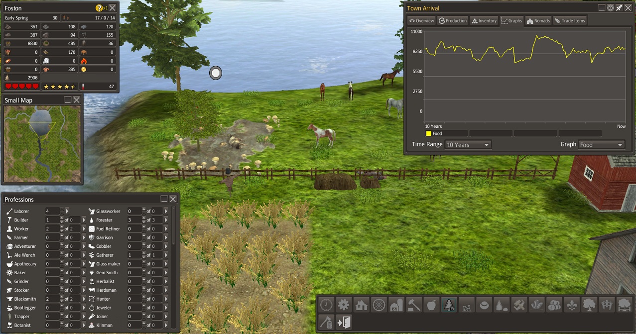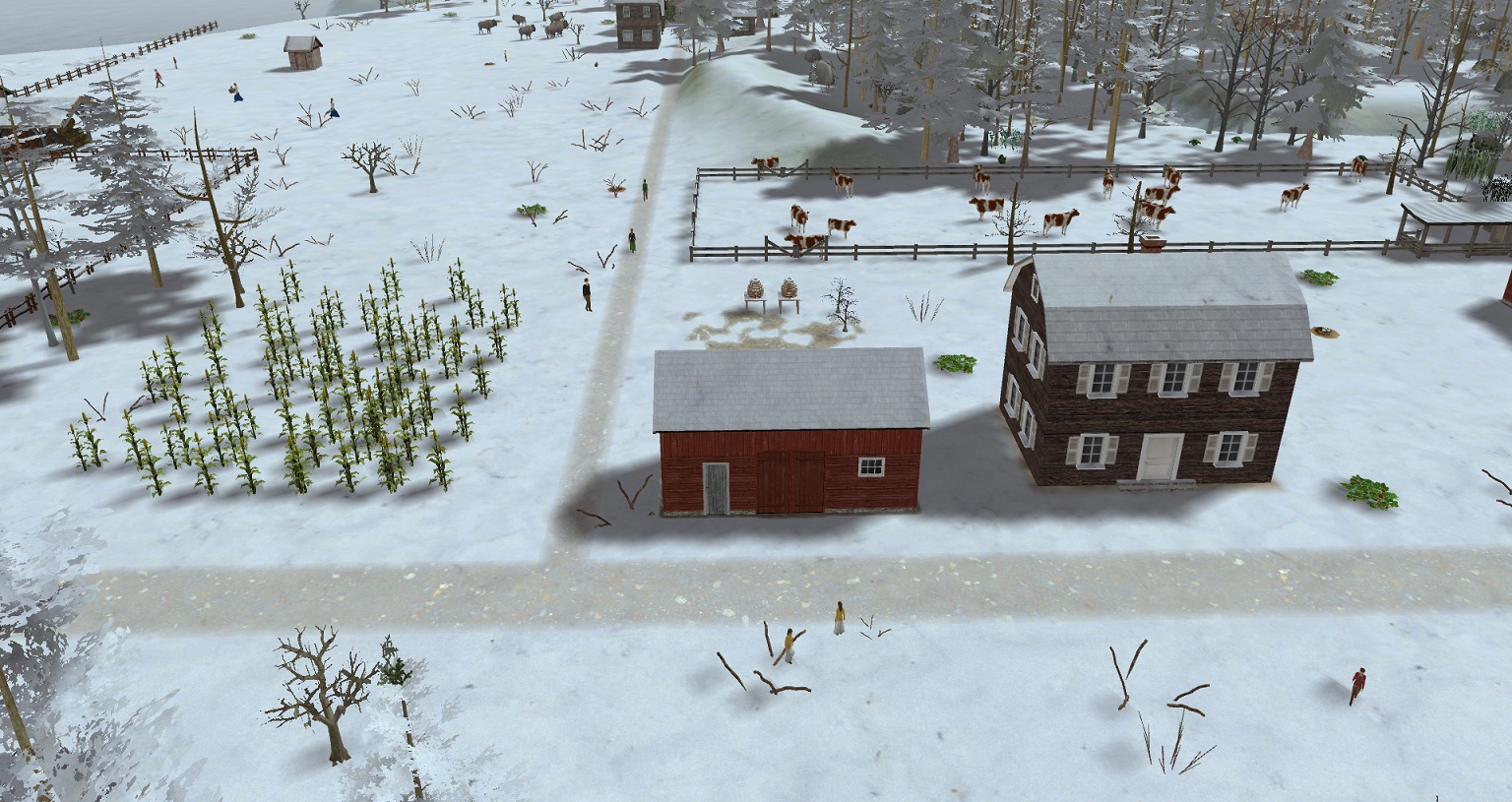population doubled. we did accomplish a lot. the 1st owners house has been built. we have shops to make tools and clothing repairs.a pasture for the horses to be rotated in, and 1 for the cows are fenced. to keep the livestock fed, we have a field of corn,oats,and a hay field. a garden of sweet corn and potatoes keeps the banies fed. they gather berries,hunt,trap, and collect firewood.