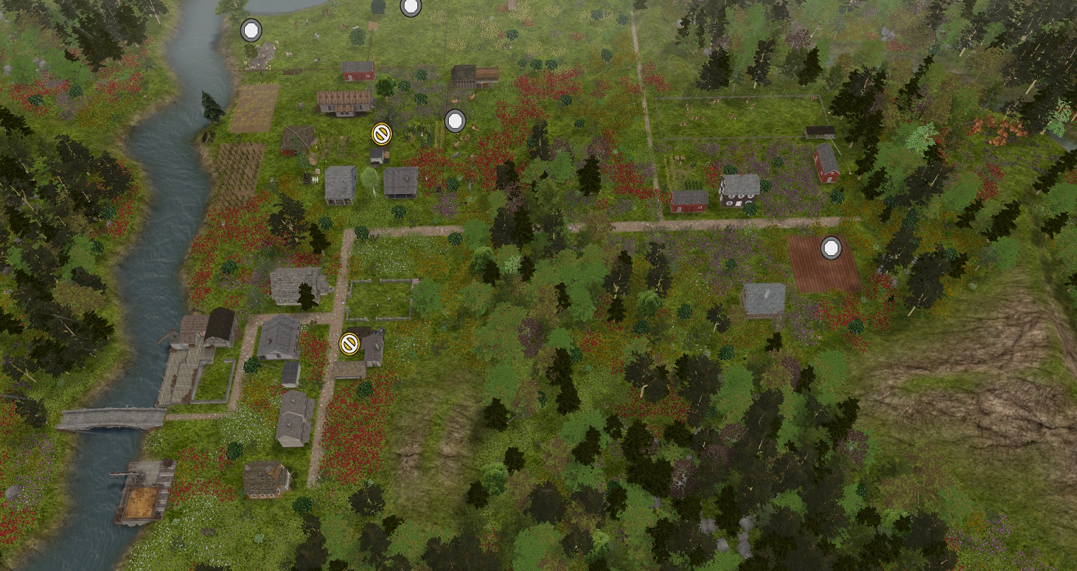 goals- soon we will need more logs,so a 3rd forest needs to be established along with a sawmill to cut more firewood. we will also need another church over the next decade.the small village will add some food processors to increase the food outputs.